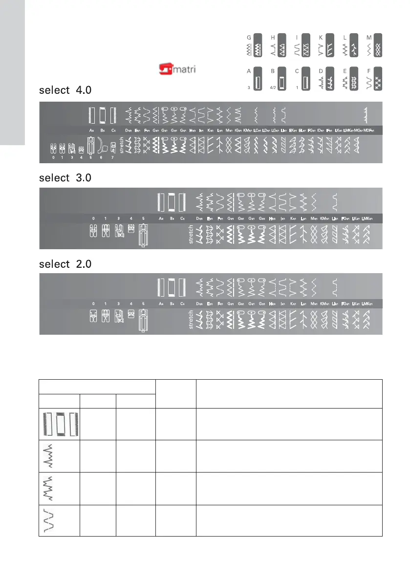 Stitch table - Non-elastic stitches