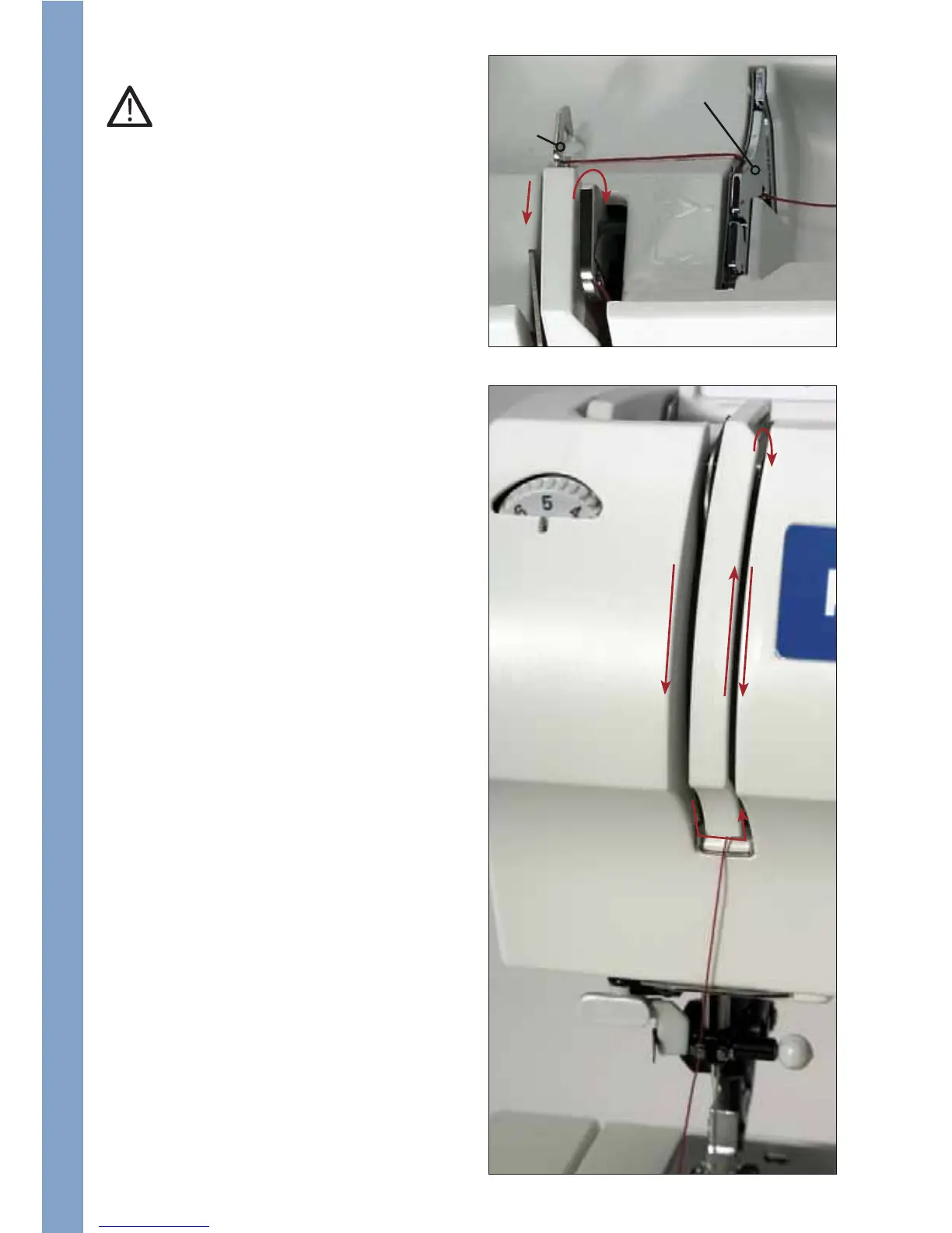 thread into guide A and under thread
