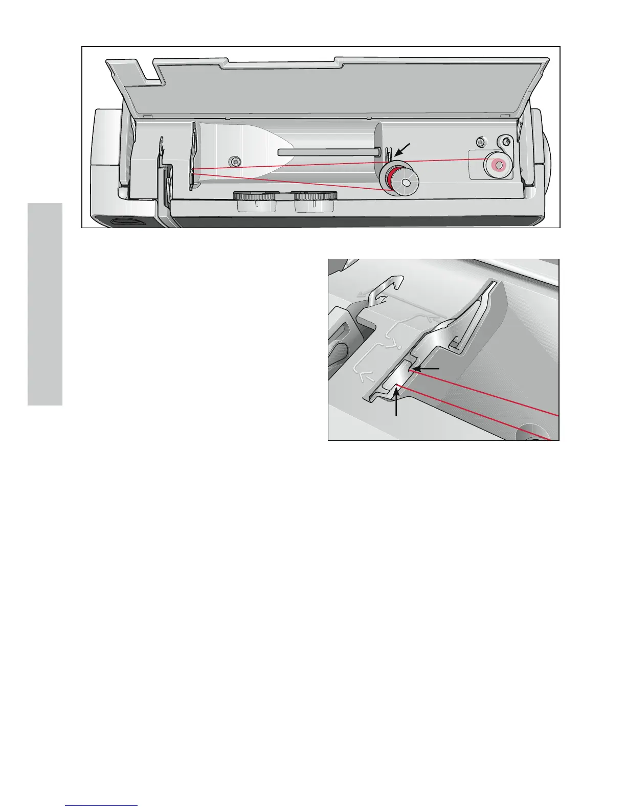 Cut the thread, push the bobbin to the left