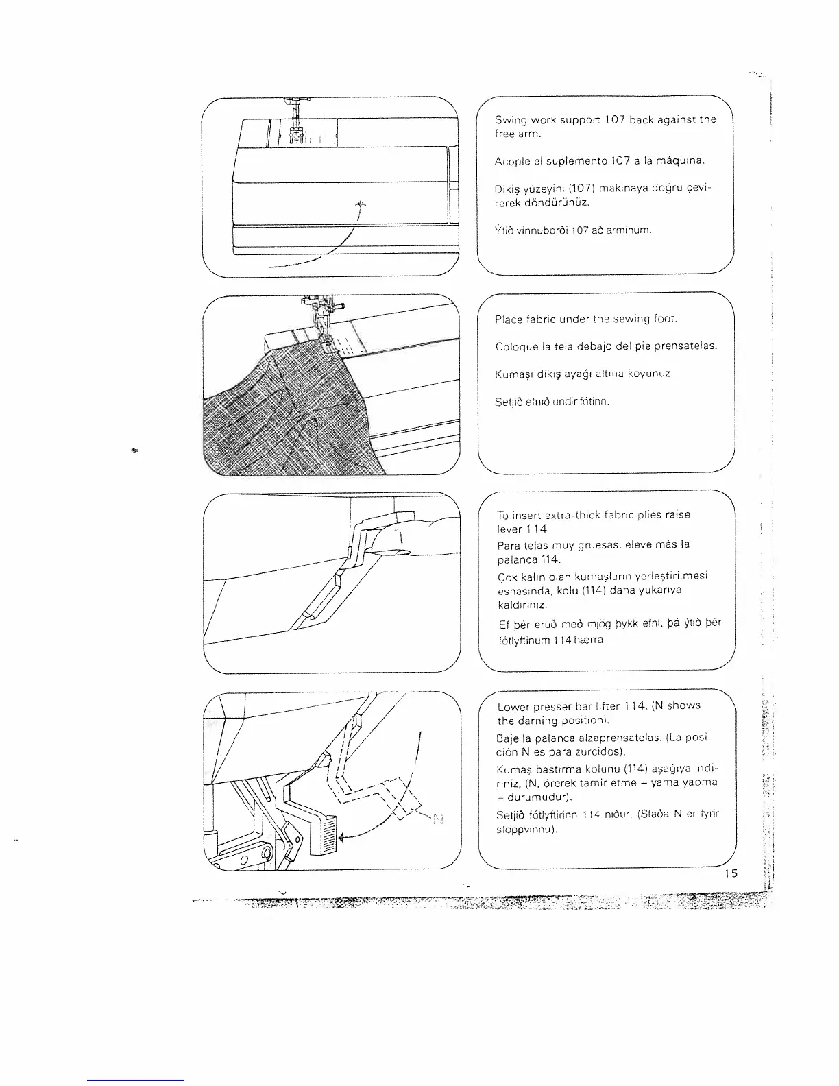 Pfaff Tiptronic 1071 - Preparing to Sew; Positioning Work Support and Fabric
