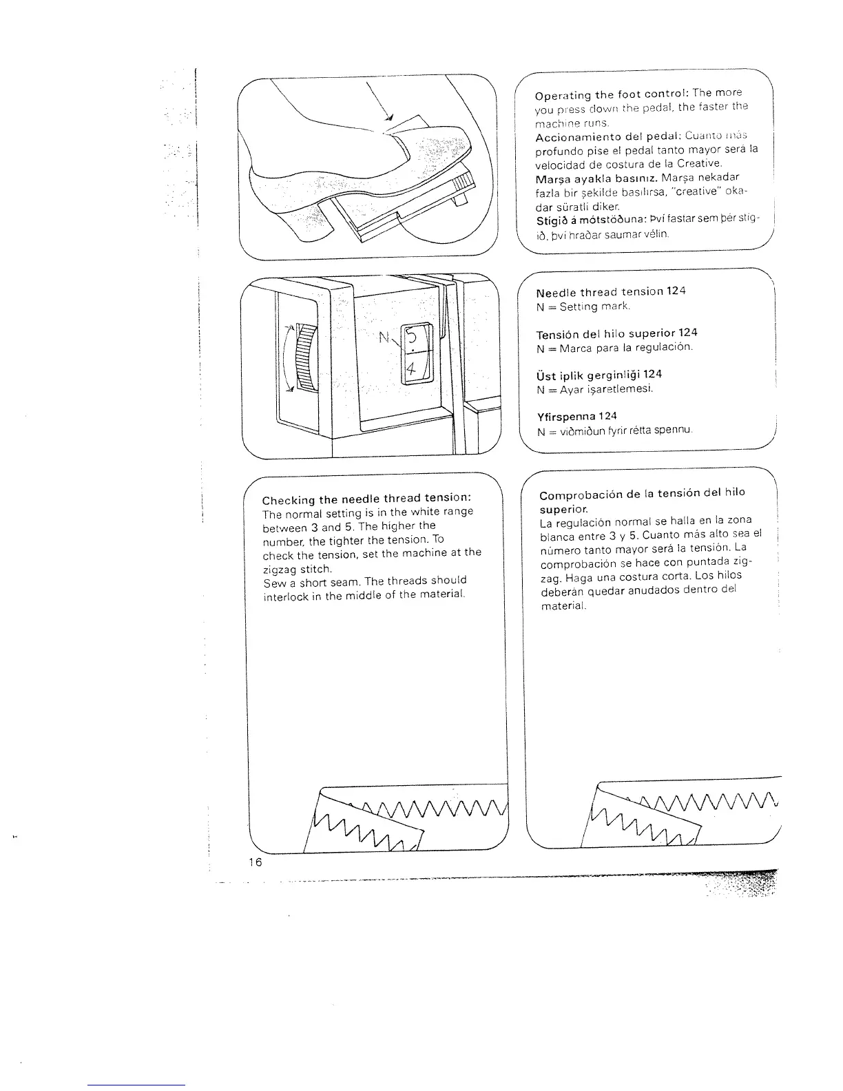 Pfaff Tiptronic 1071 - Foot Control and Needle Tension; Operating the Foot Control; Checking Needle Thread Tension