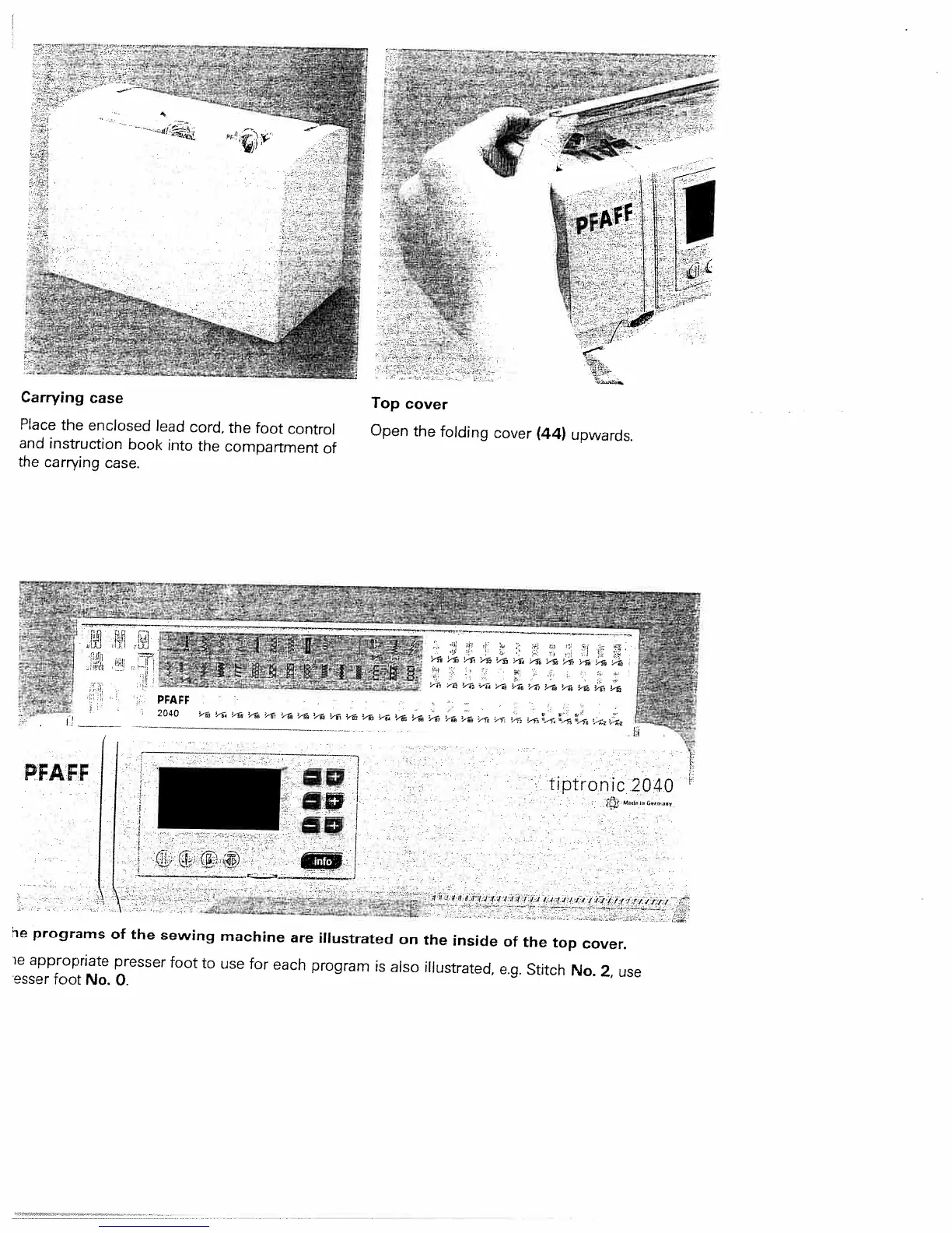Pfaff tiptronic 2040 - Getting Started; Carrying Case and Top Cover