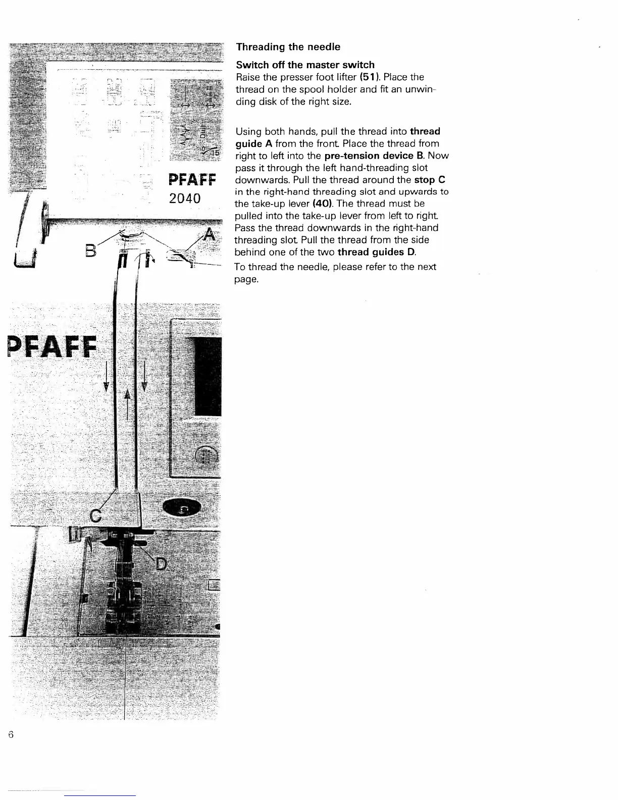 Pfaff tiptronic 2040 - Needle Threading and Threader; Needle Threading Procedure