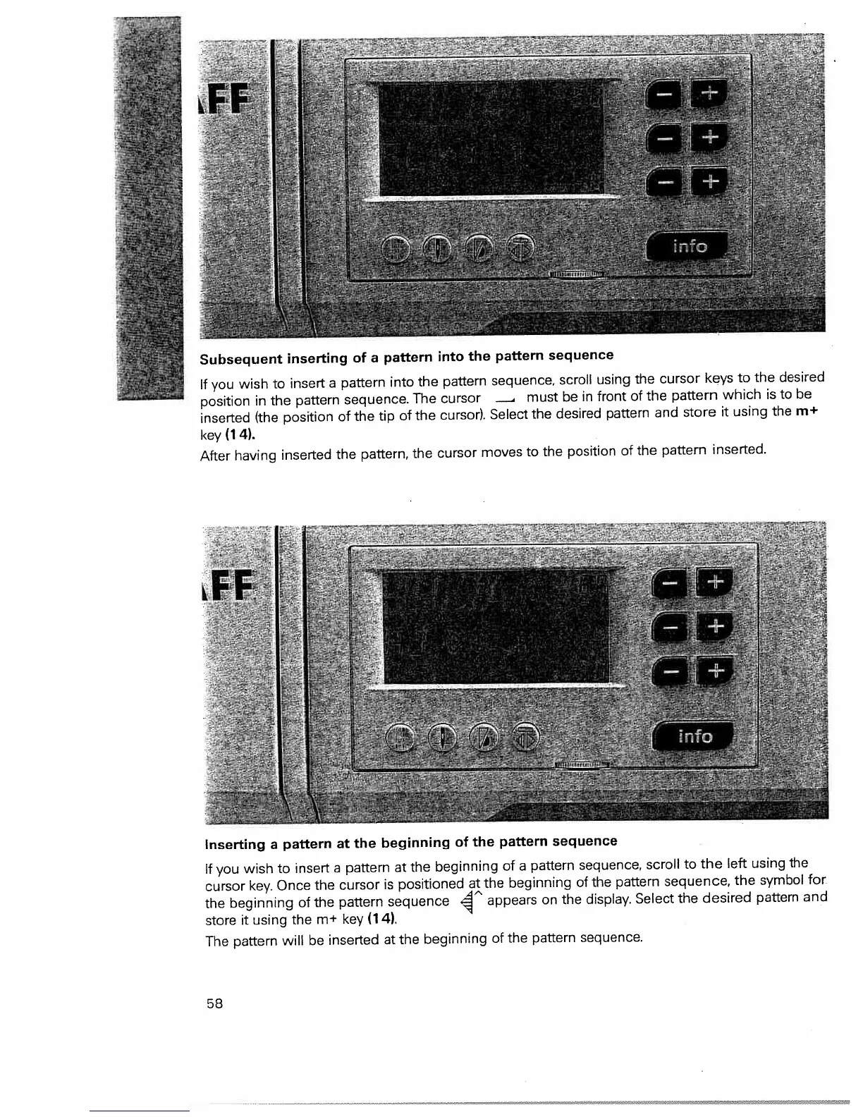 Pfaff tiptronic 2040 - Subsequent Inserting of a Pattern into the Pattern Sequence; Inserting a Pattern at the Beginning of the Pattern Sequence