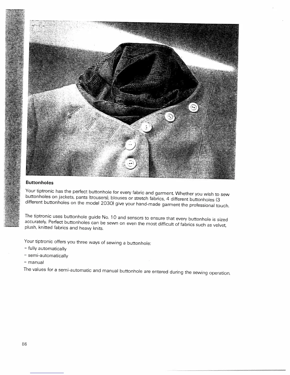 Pfaff tiptronic 2040 - Buttonhole Types Overview