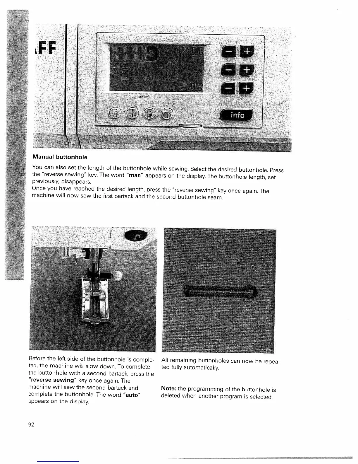 Pfaff tiptronic 2040 - Manual Buttonholes; Manual Buttonhole Procedure