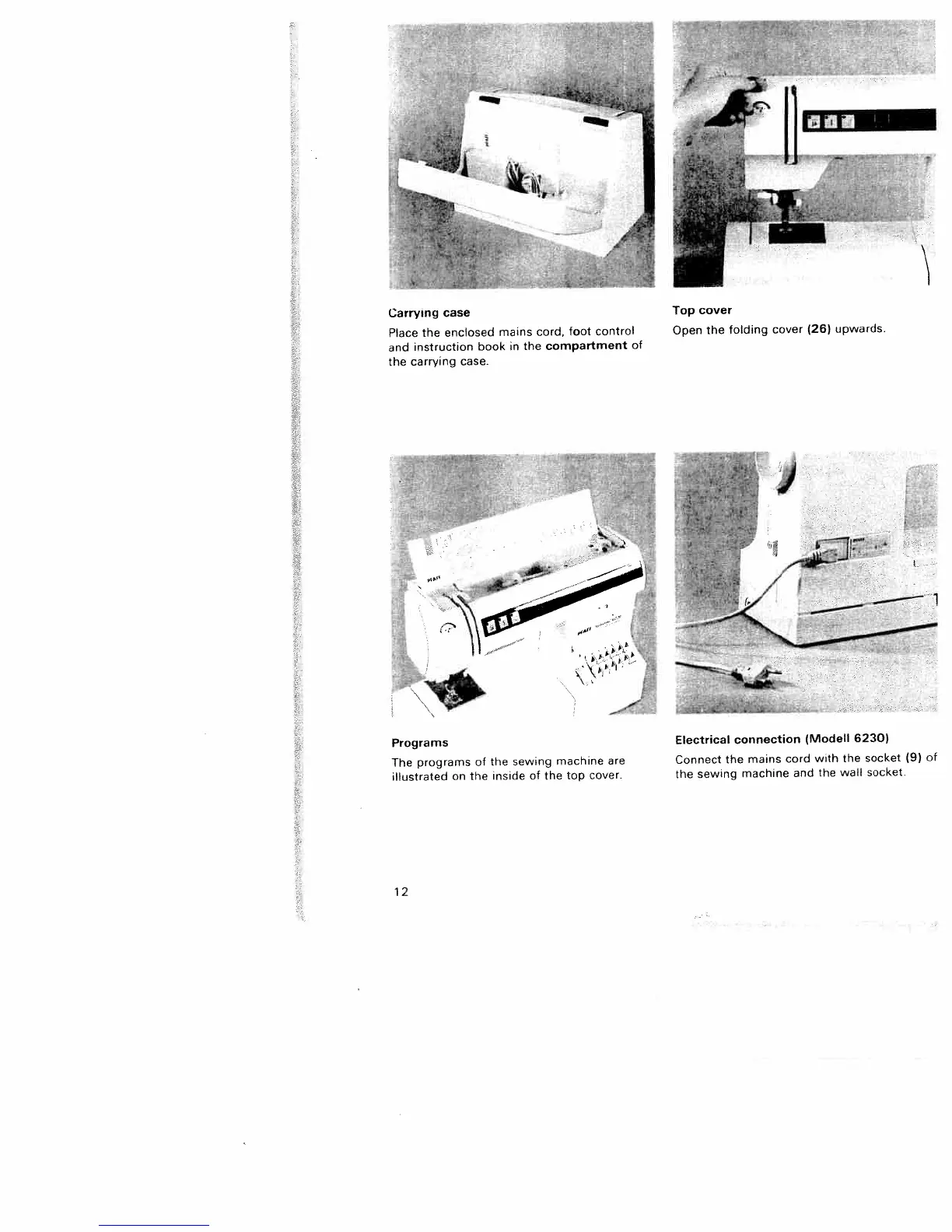 Pfaff Tiptronic 6230 - Machine Setup and Connections; Carrying Case, Programs, and Electrical Connection