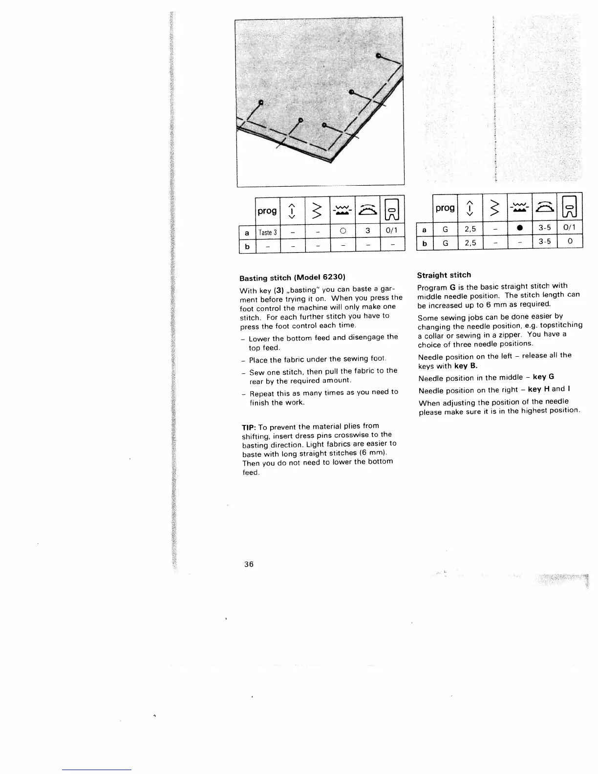 Pfaff Tiptronic 6230 - Basting Stitch; Straight Stitch