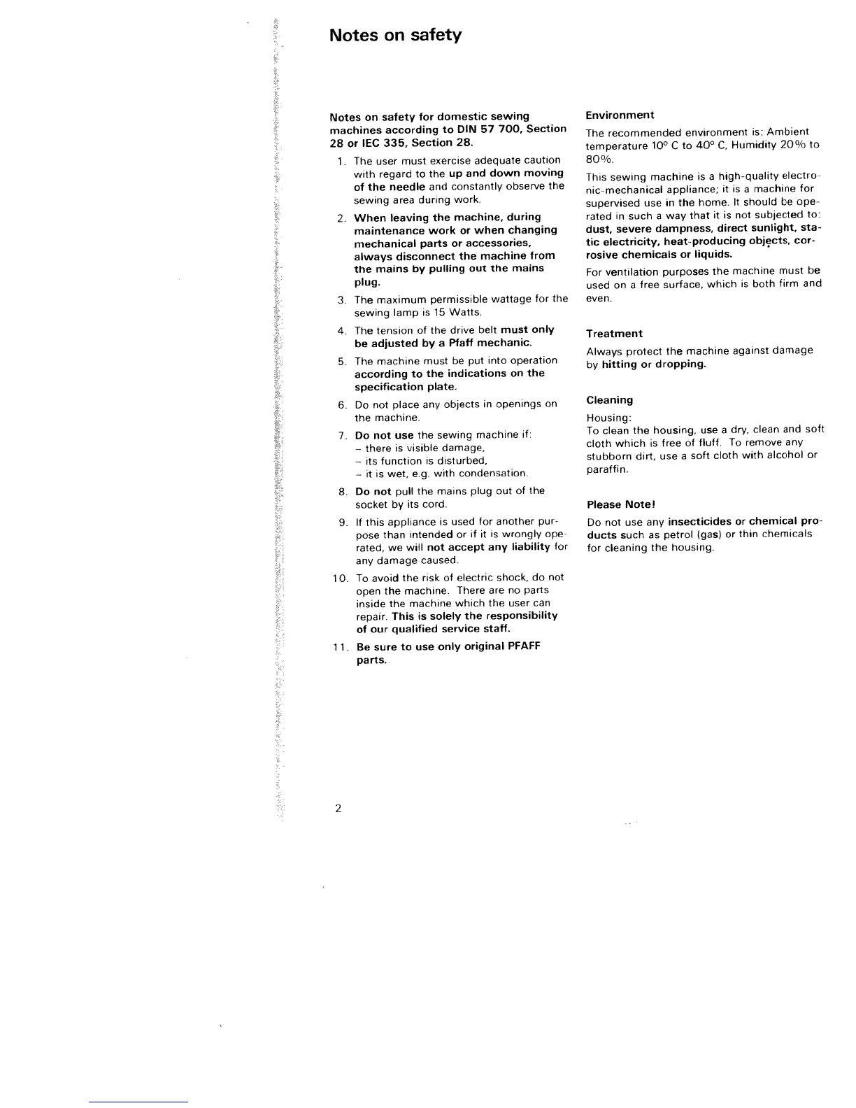 Pfaff Tiptronic 6230 - Notes on Safety; Environment; Treatment; Cleaning