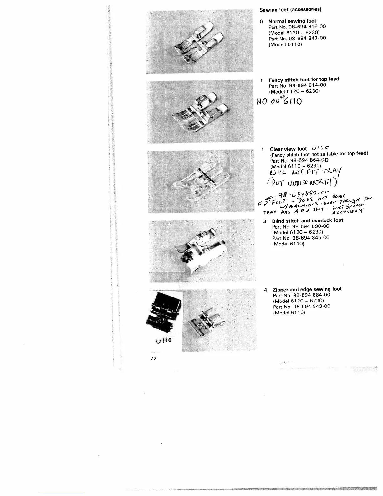 Pfaff Tiptronic 6230 - Sewing Feet; Normal Sewing Foot; Fancy Stitch Foot for Top Feed; Clear View Foot