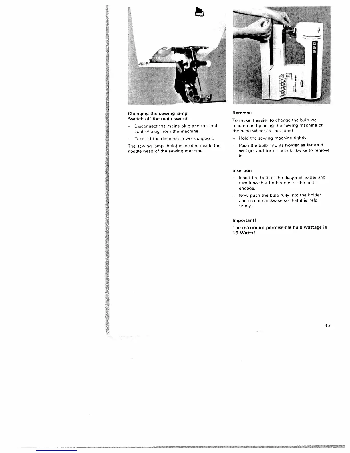 Pfaff Tiptronic 6230 - Changing the Sewing Lamp