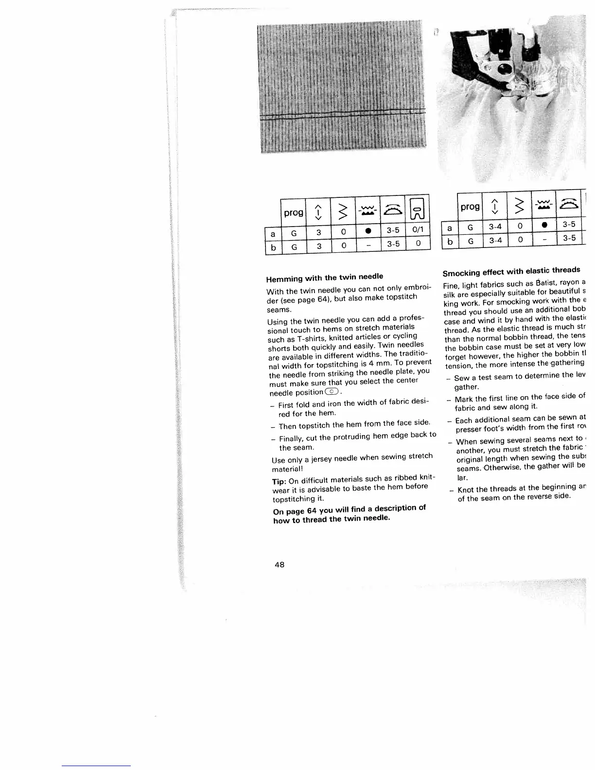 Pfaff tiptronic 6232 - Hemming with the Twin Needle; Smocking Effect with Elastic Threads