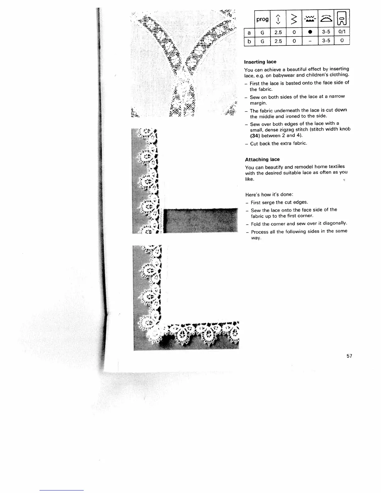Pfaff tiptronic 6232 - Inserting Lace; Attaching Lace
