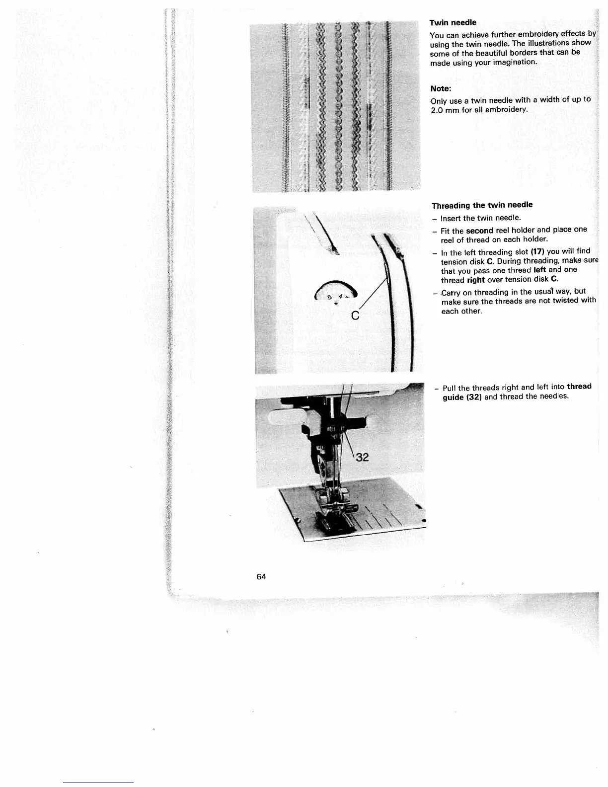 Pfaff tiptronic 6232 - Twin Needle; Threading the Twin Needle
