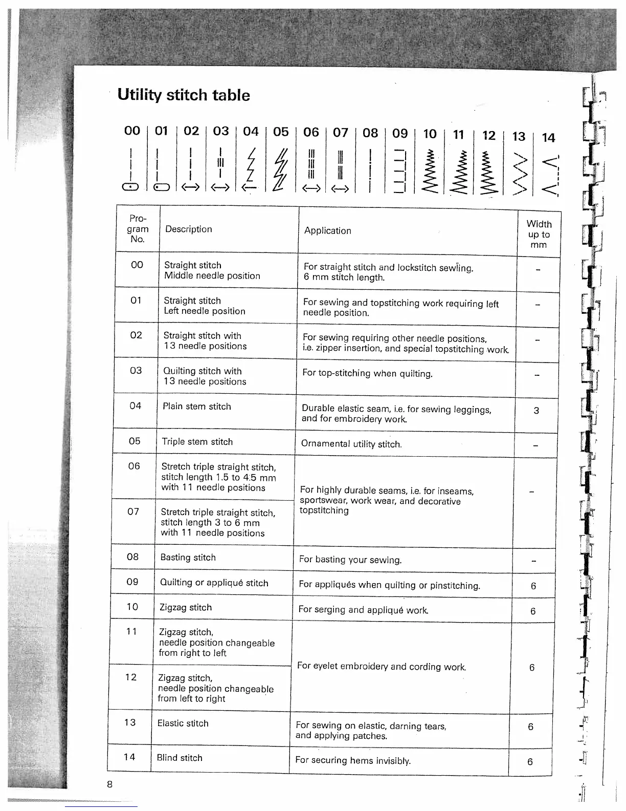 Pfaff tiptronic 6270 - Utility Stitch Table