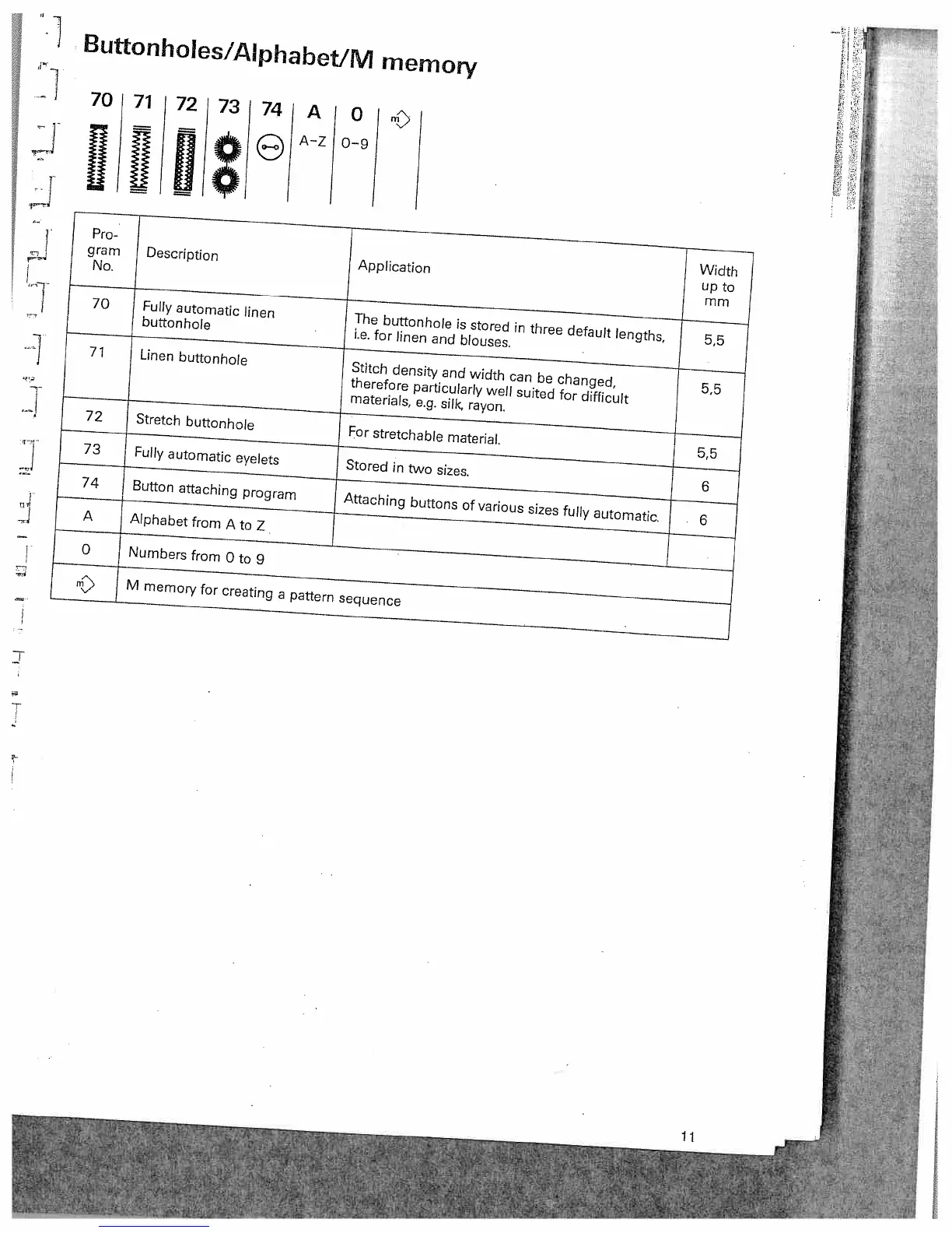 Pfaff tiptronic 6270 - Buttonholes;Alphabet;Memory