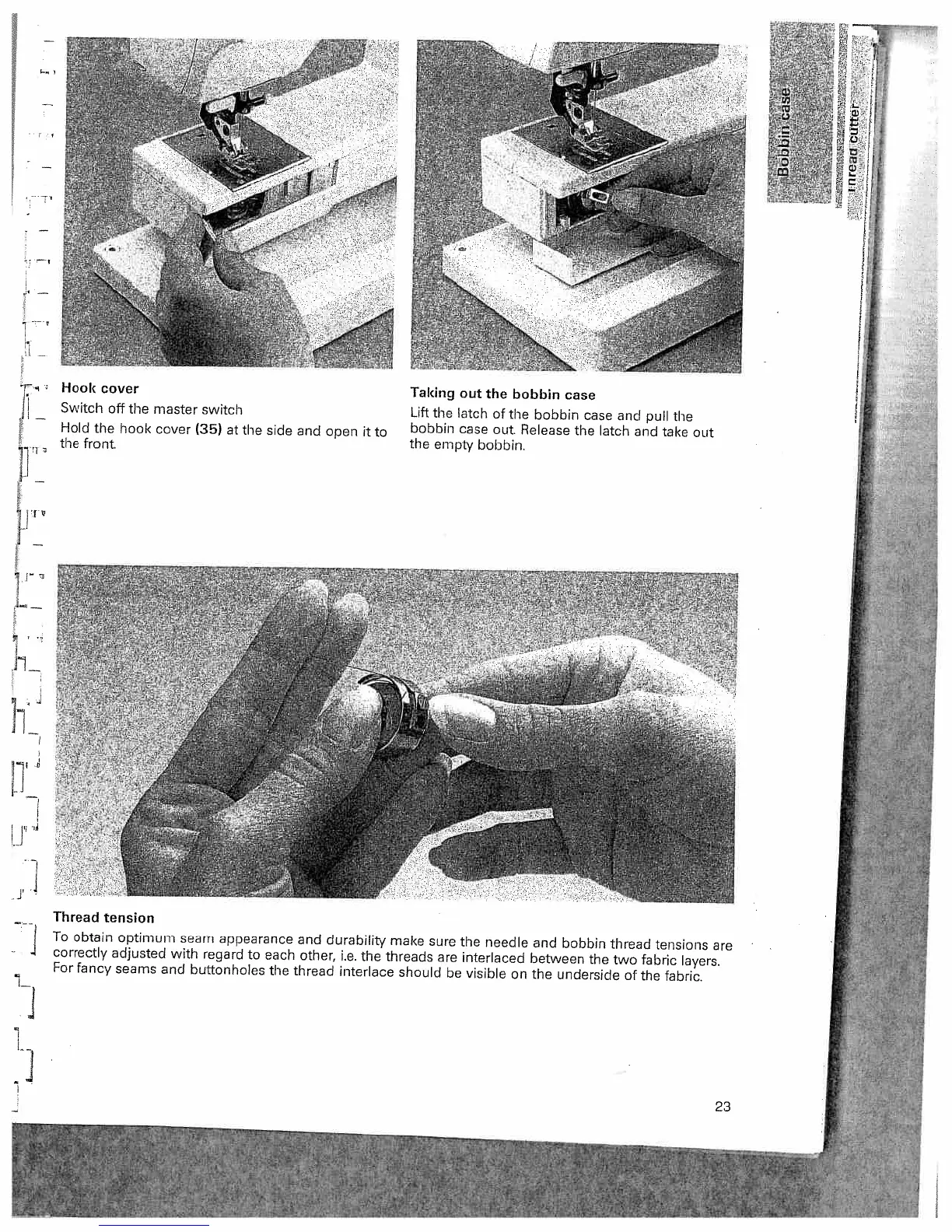 Pfaff tiptronic 6270 - Hook Cover; Taking out the Bobbin Case; Thread Tension