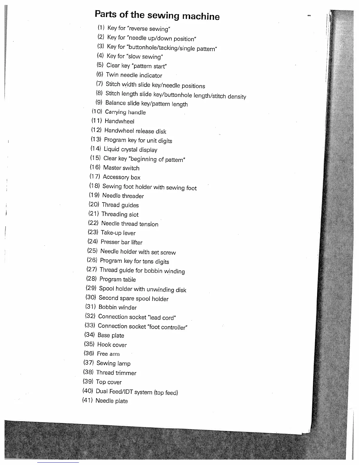 Pfaff tiptronic 6270 - Parts of the Sewing Machine
