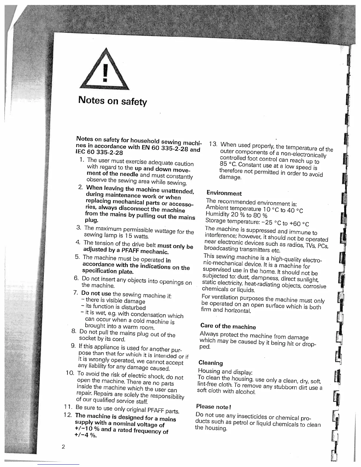 Pfaff tiptronic 6270 - General Safety Notes