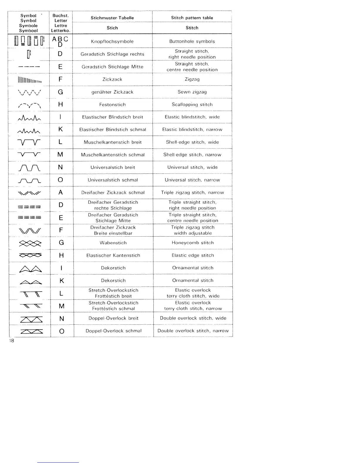 Stichmuster-Tabelle