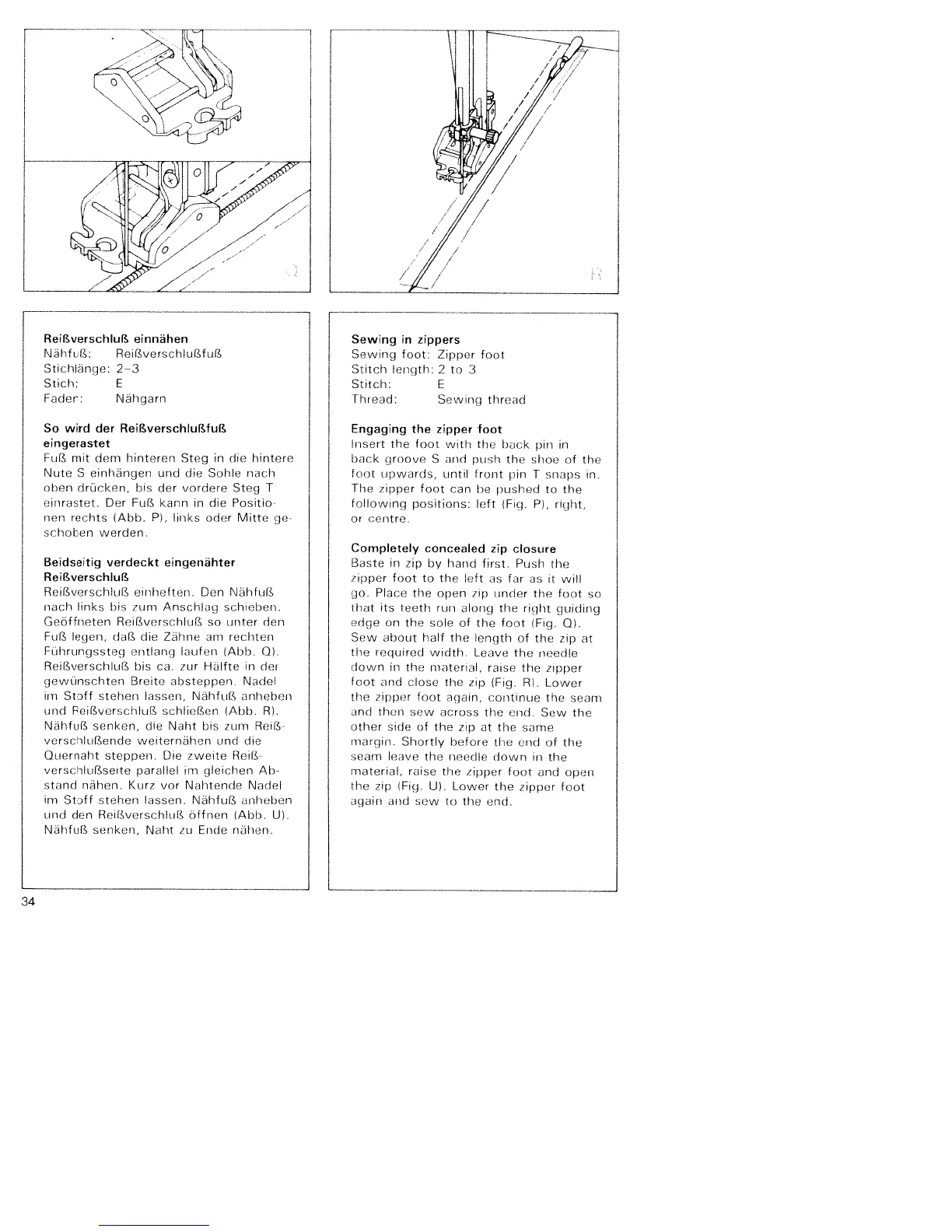 Pfaff varimatic 6085 - Zippers in Ladies Slacks; Zipper Preparation and Insertion