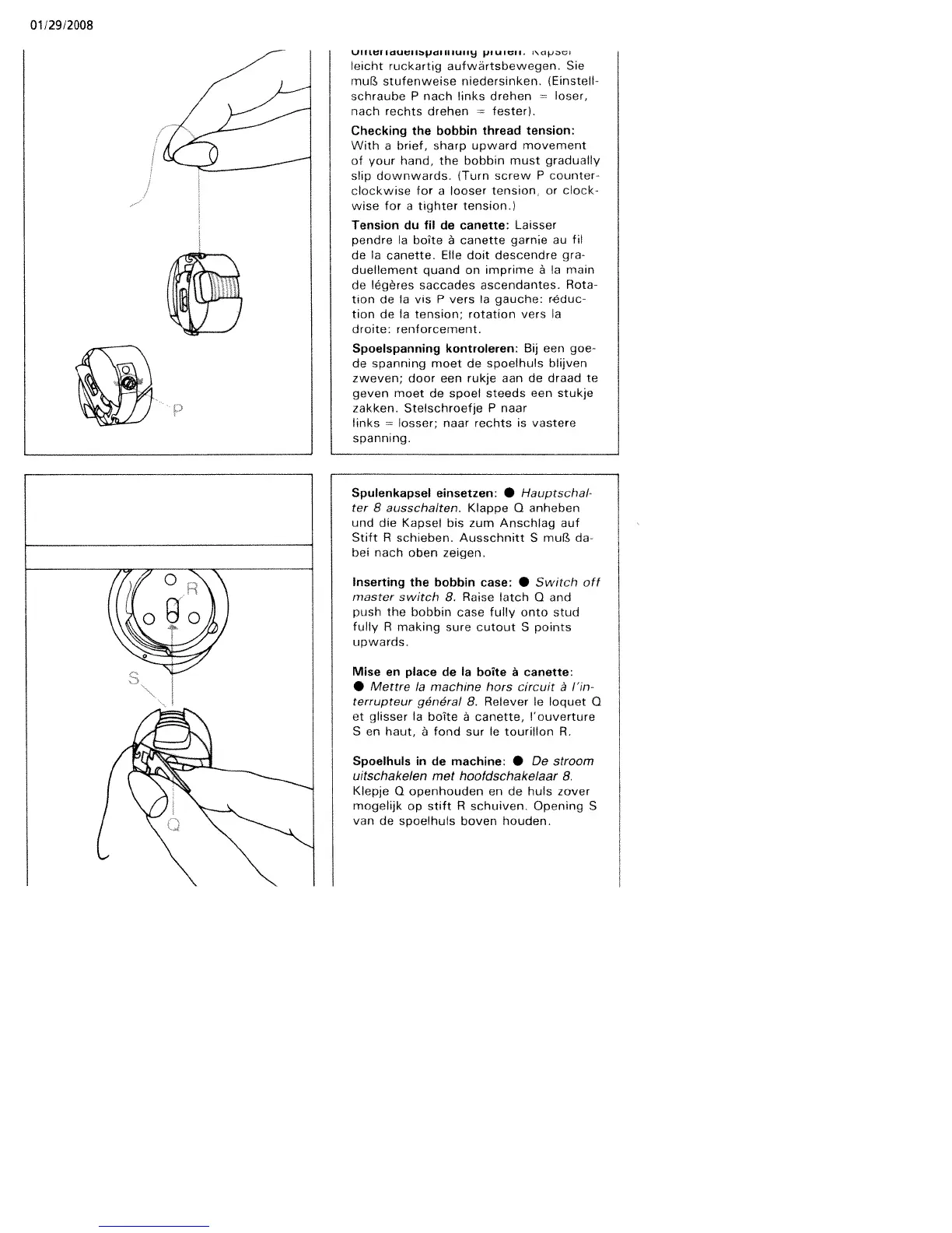 Pfaff varimatic 6091 - Inserting the Bobbin Case; Checking Bobbin Thread Tension