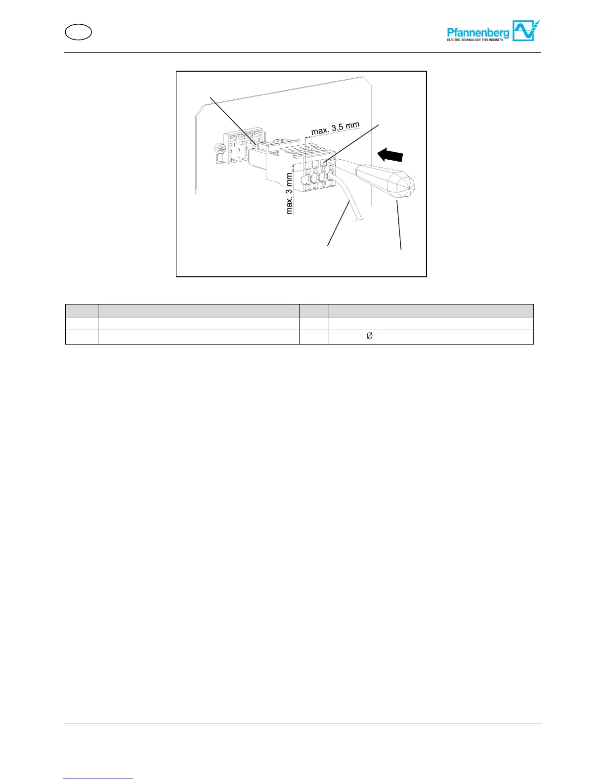 For electrical connection, insert the screwdriver (3) into the cage terminal (2) and connect the cables (4) to the