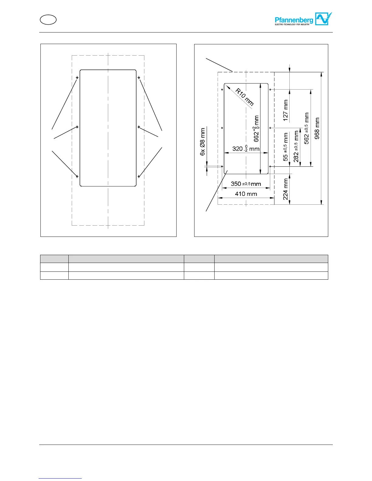 Provide the switch cabinet with cut-out (3) and holes (1). For the prescribed dimensions, refer to the figure