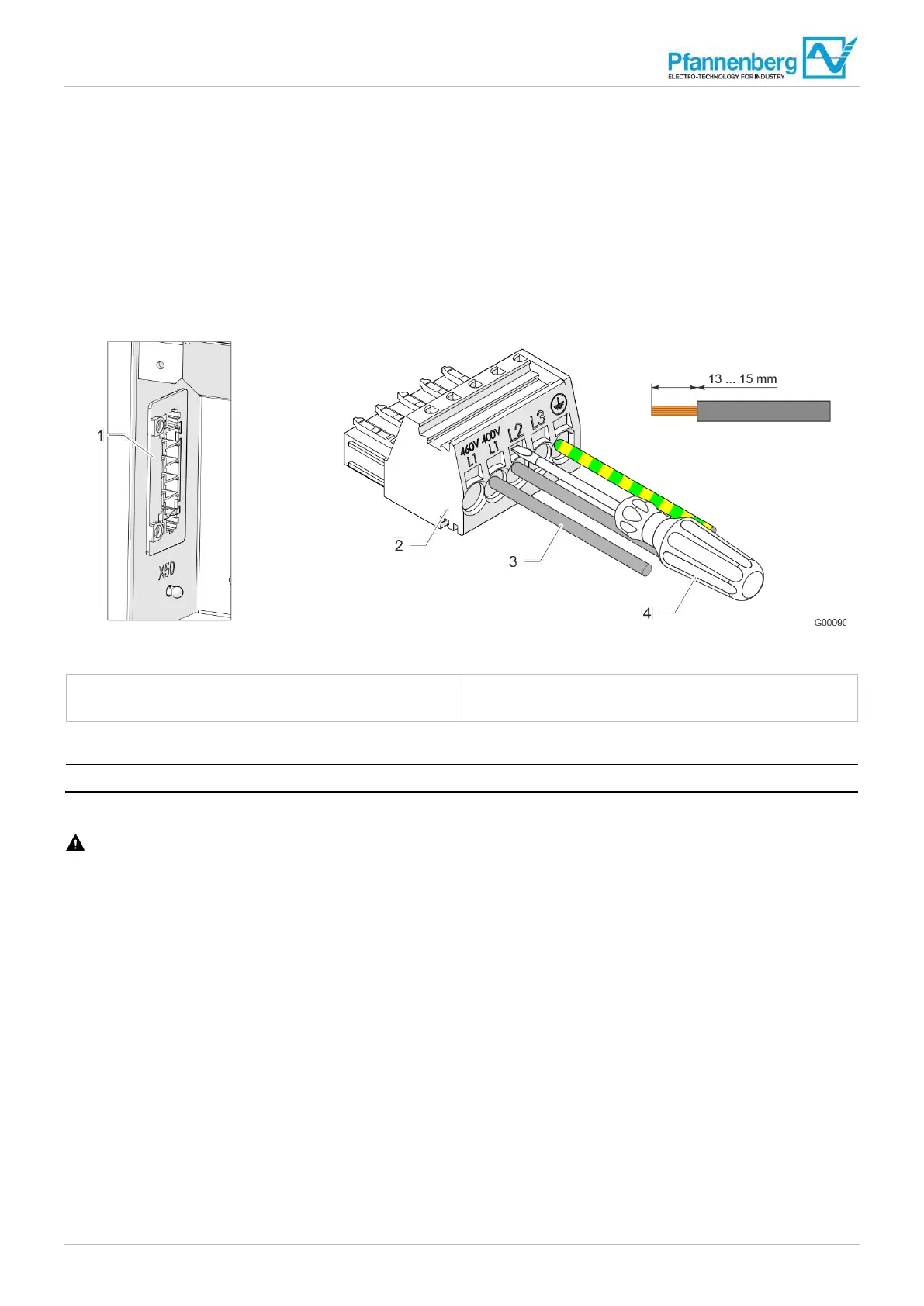 3 Cable 1.5 to 2.5 mm², stripping length 13 to 15 mm