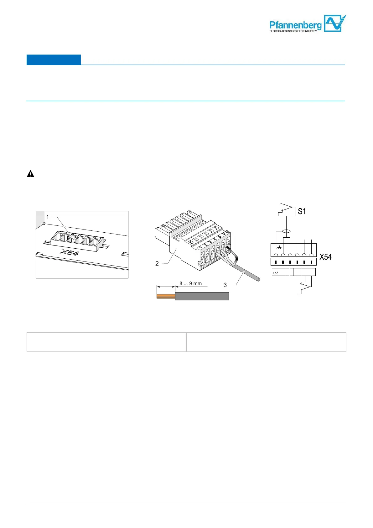 The door contact switch must interrupt the connection between the terminals X54:4 and X54:5 when the switch cabinet door is