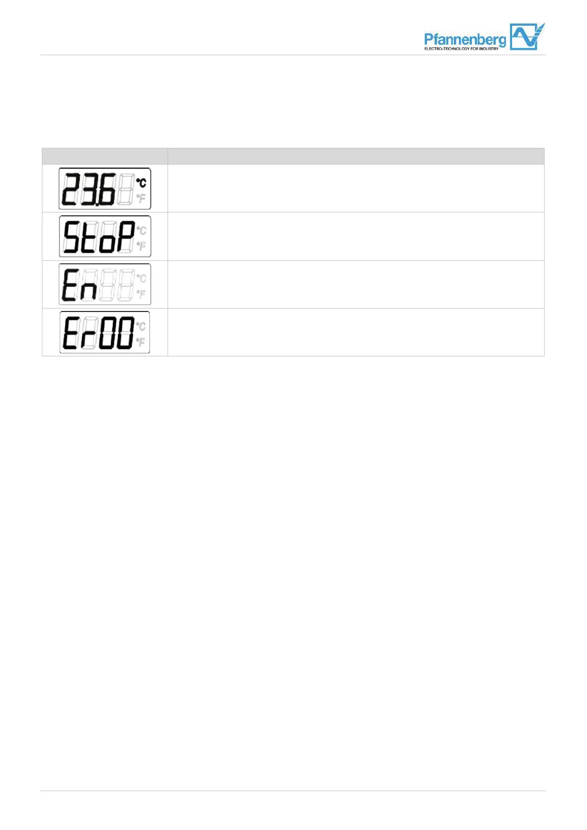 In case of a fault, error number (Er01-Er15) alternating with temperature display (°C/°F).