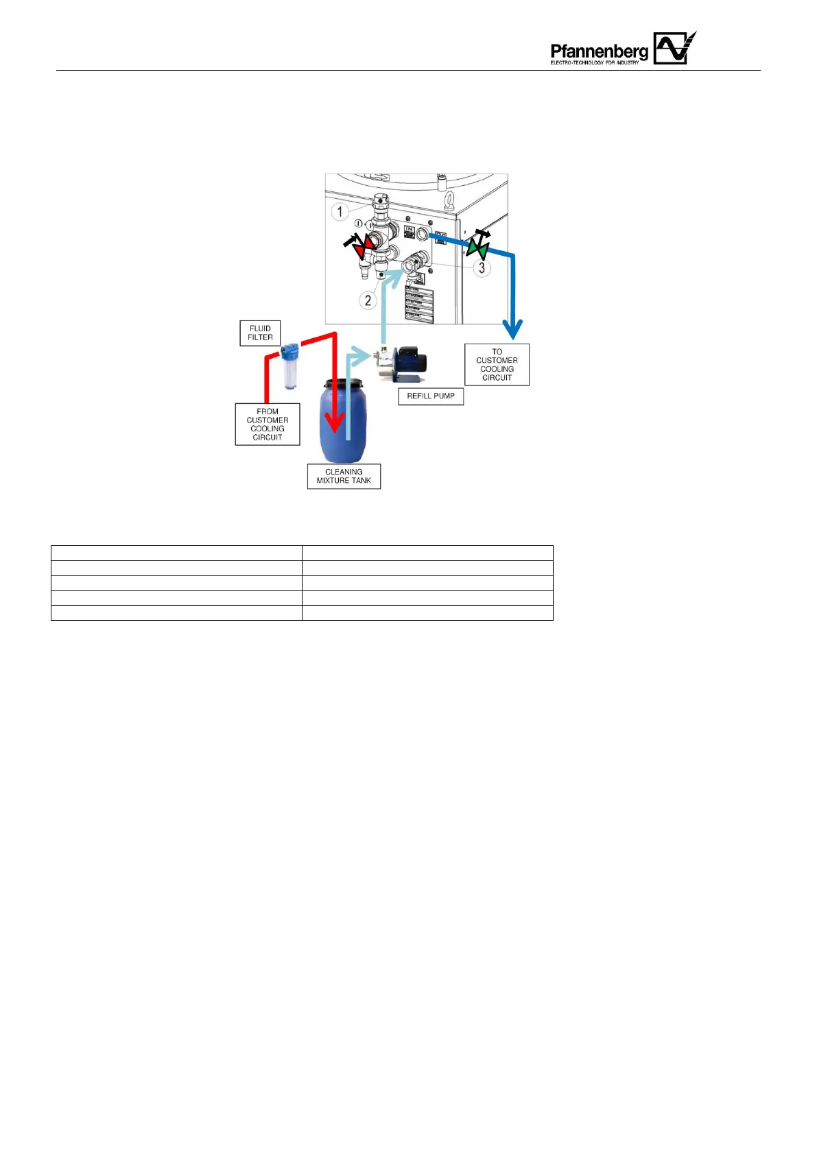 Подсоединить трубу выхода воды к охладительному контуру заказчика (линия темно-синего цвета) и установить фильтр