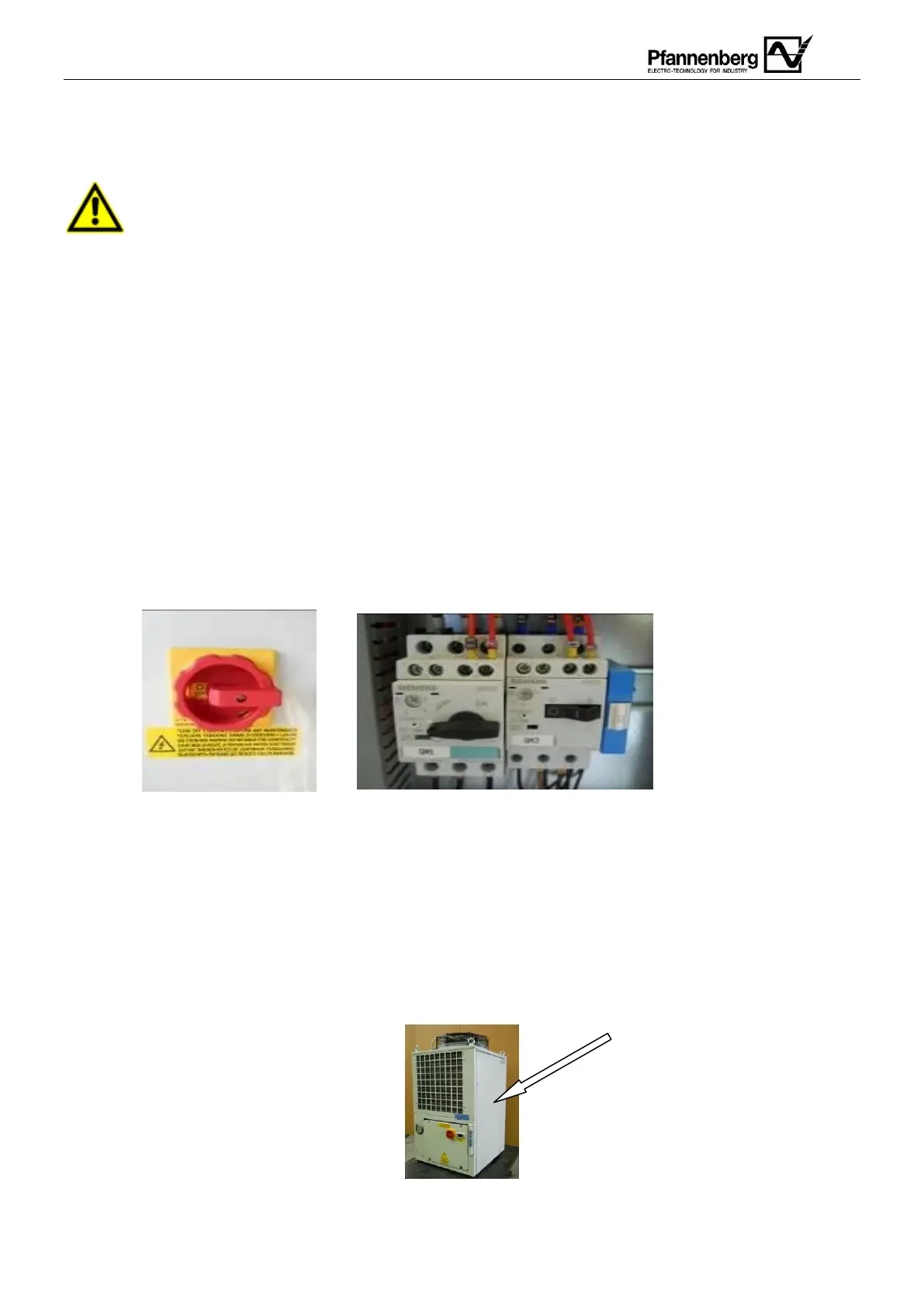 Den Hauptschalter, den Steuerschalter und alle Trennschalter auf „0“ (Off) stellen.