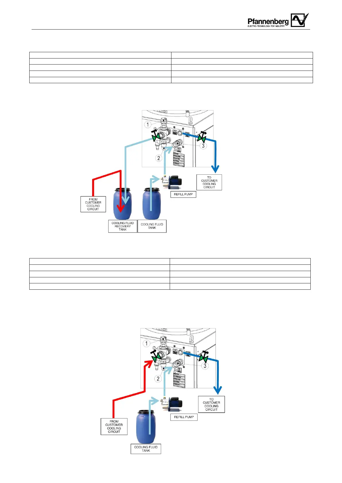 Phase 5: Den Rücklaufschlauch vom Kühlkreislauf des Kunden (rote Linie) an den Eingangsanschluss des Rückkühlers