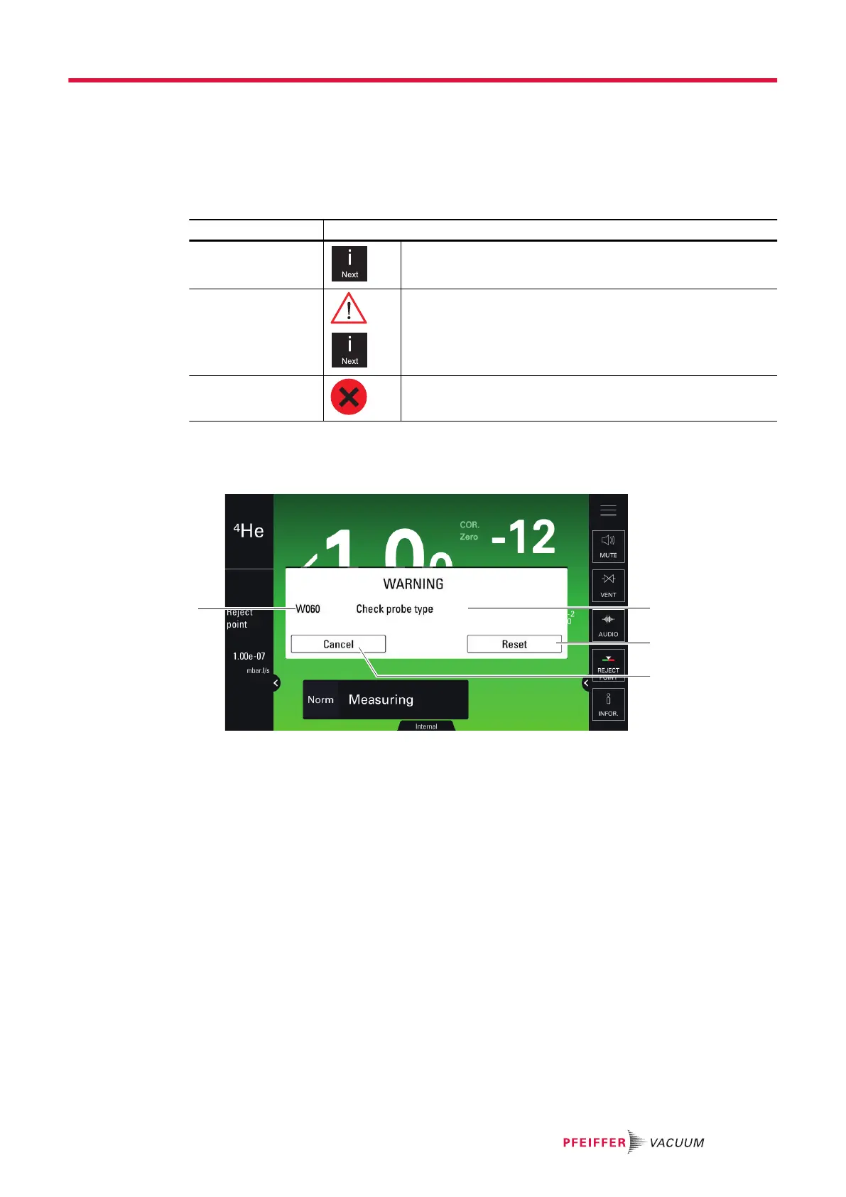 Warning Press on [i Next] to display the fault.