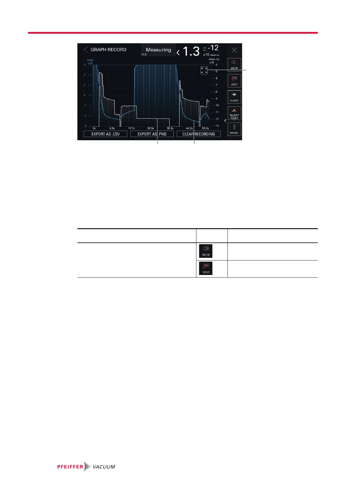 1 Pictogram indicating that the zoom function is applied 3 Leak rate plot (white)