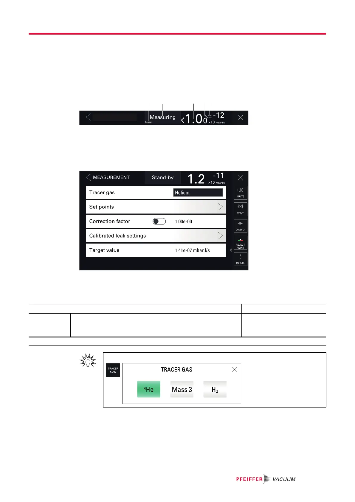 The leak rate is permanently displayed on the settings menus (except on the 'File manager' menu).