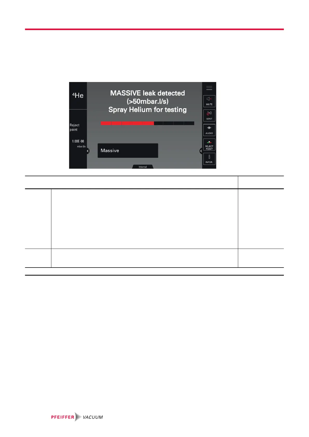 The detector can then perform a qualitative test of a leak (information leak > 50 mbar