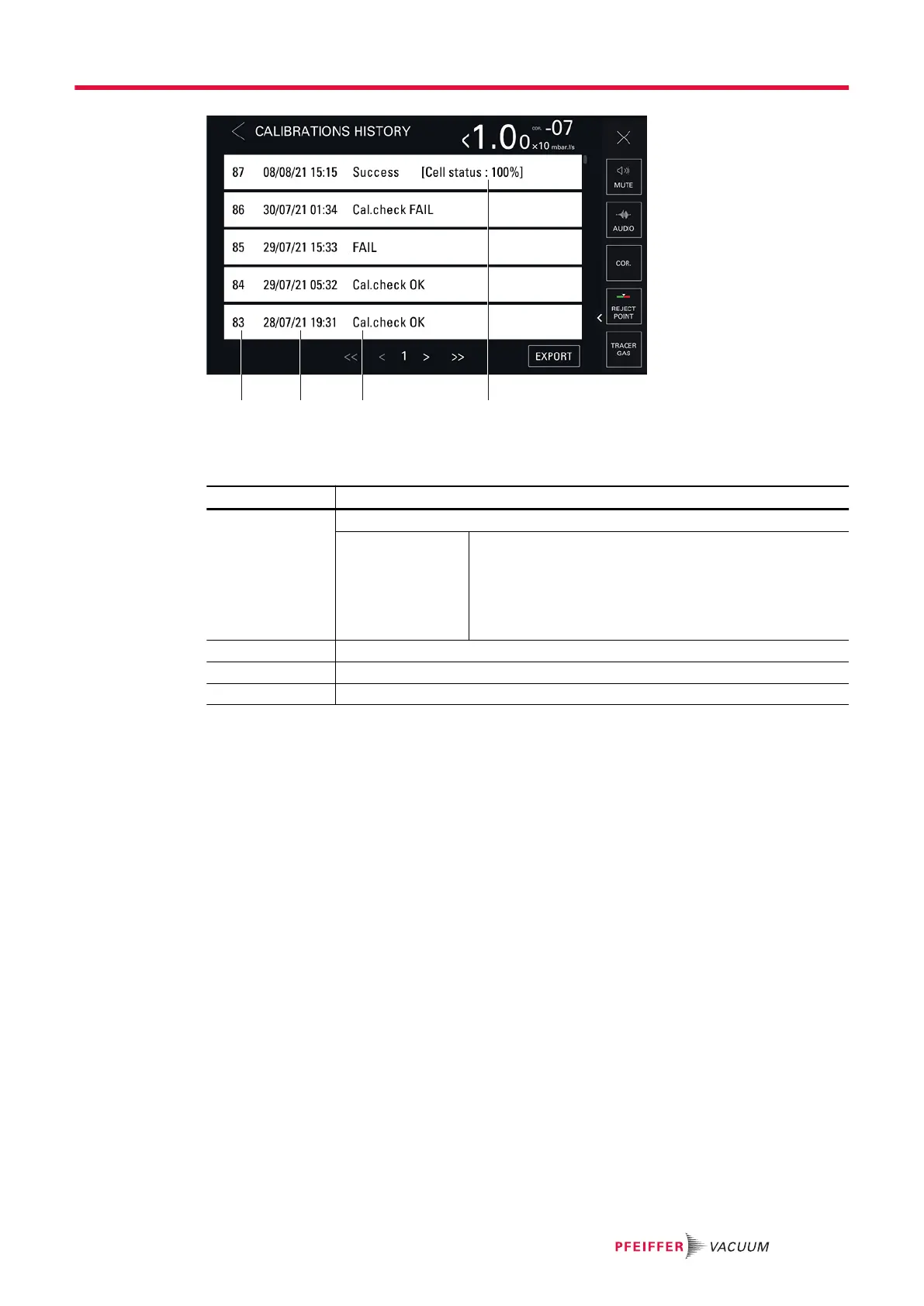 2 Date and time of the calibration 4 Indicator of analyzer cell performance (see below)