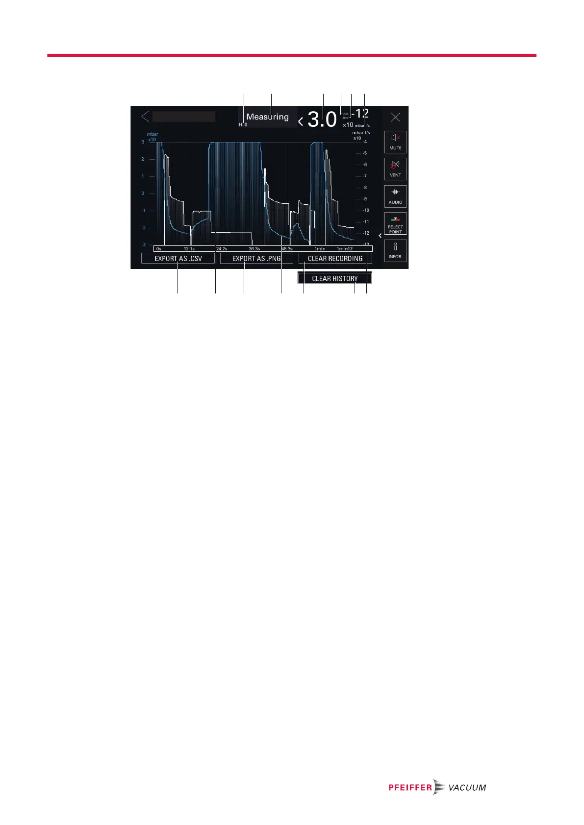 6 Leak rate unit 13 Button to save a .csv file