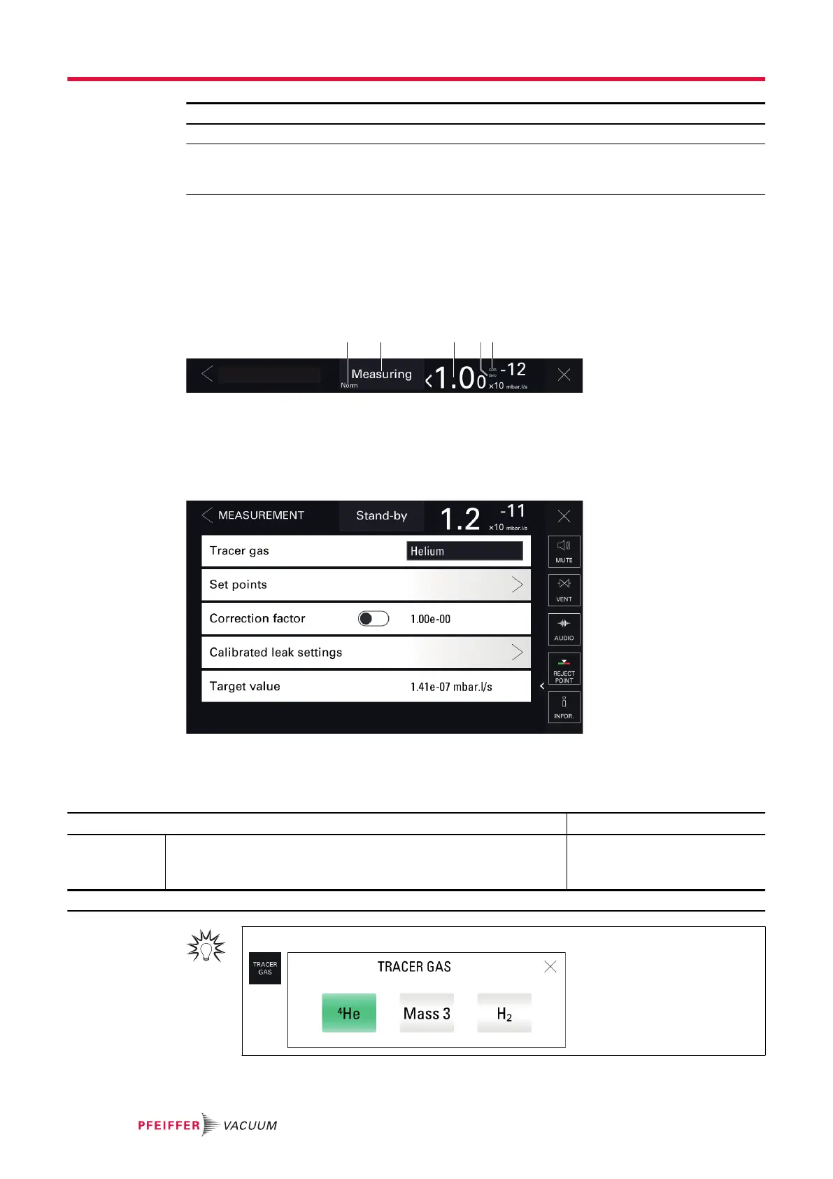 The leak rate is permanently displayed on the settings menus (except on the 'File manager' menu).