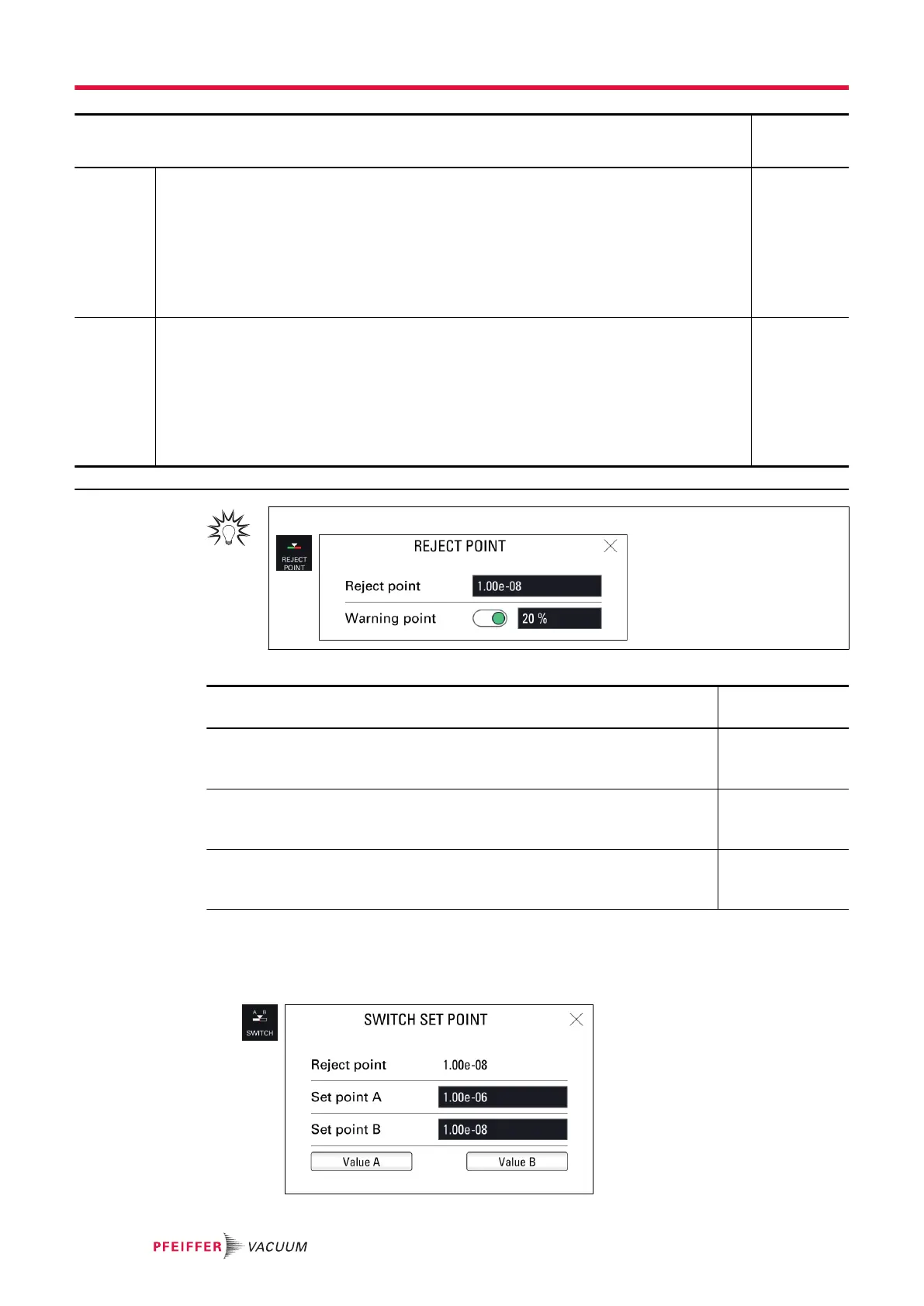 The Switch set point function is used to store 2 reject points and then assign one to the hard vacuum