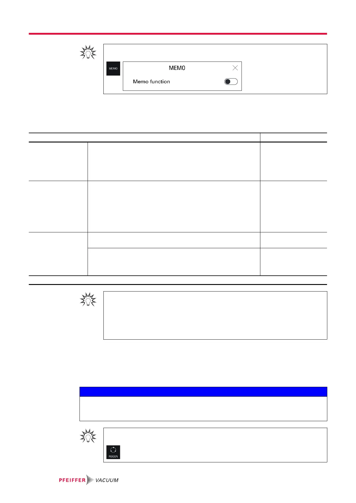 For quick access from the main screen, configure a function key to [REGEN] (see chapter