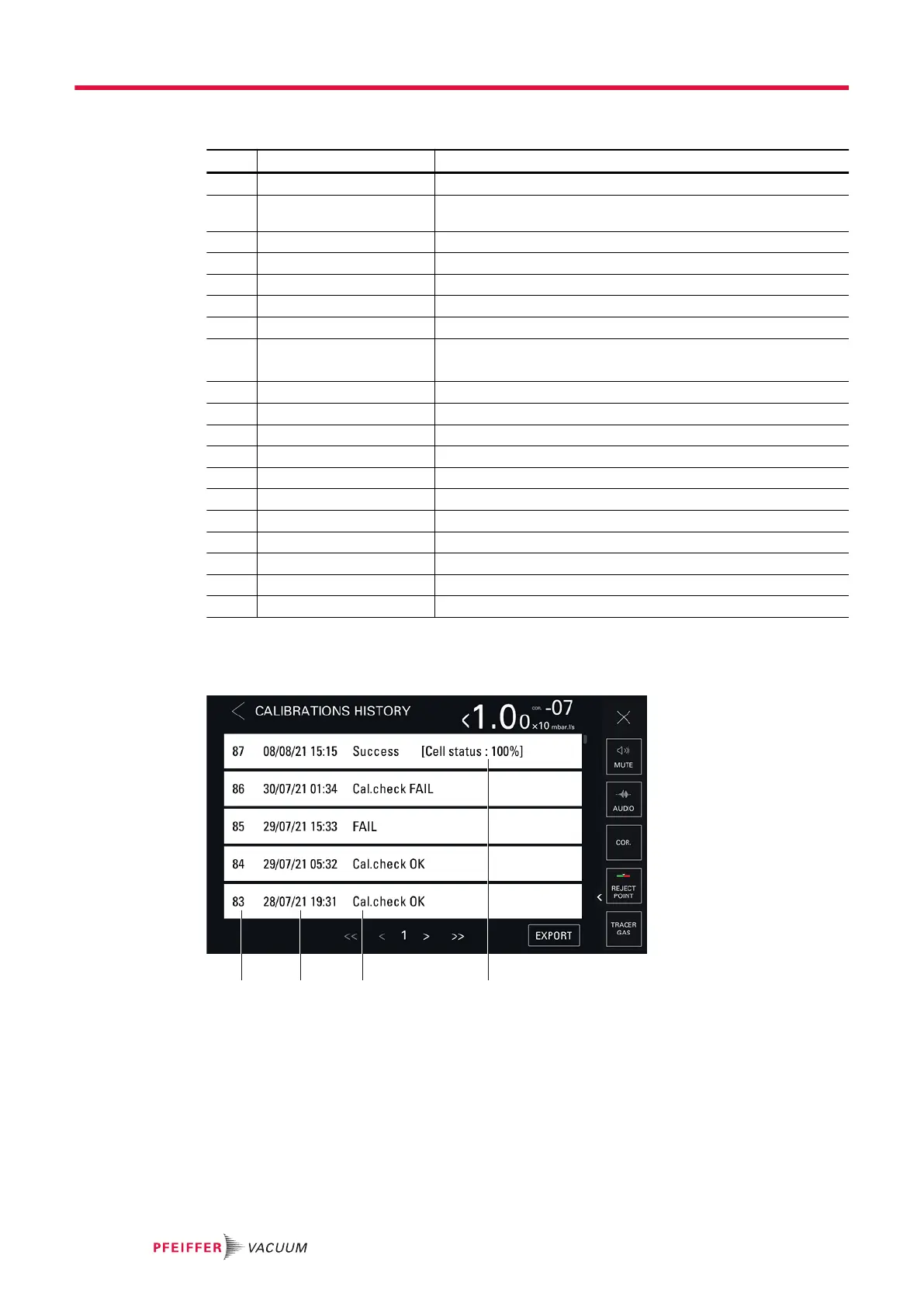 Access: Menu [Maintenance] [History] [Calibrations history]