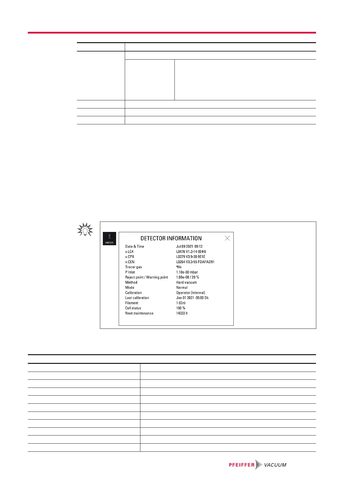 This function is used to view information on the leak detector.