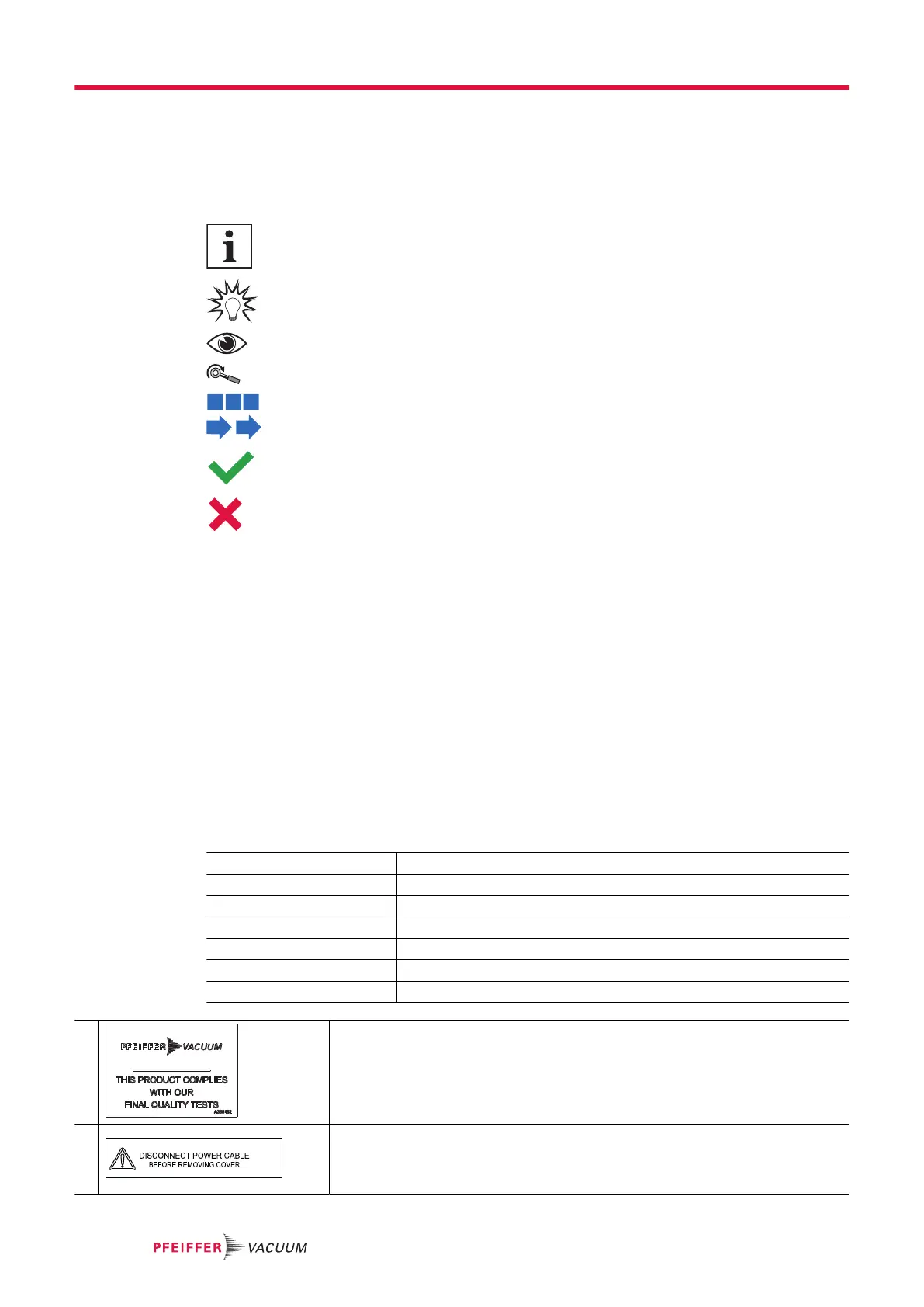Pictographs used in the document indicate useful information.