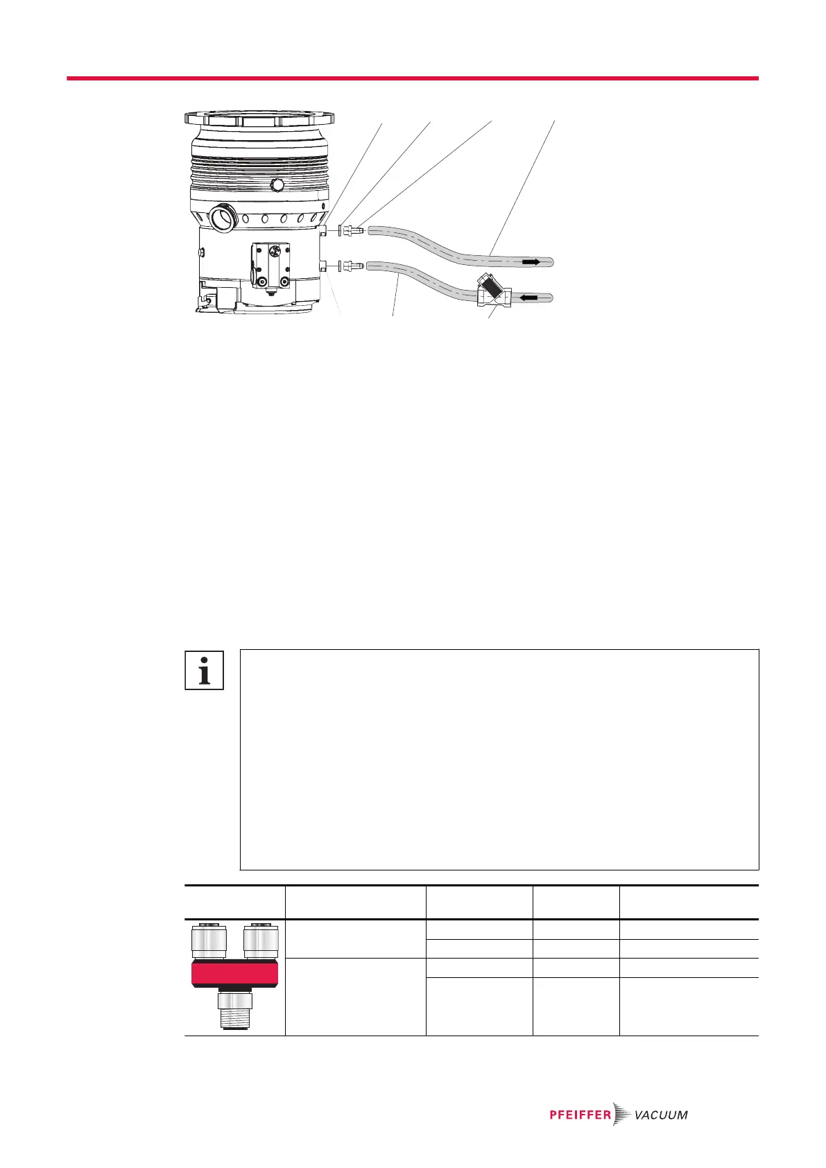 1. Screw one hose nozzle with sealing ring onto each of the turbopump's cooling water connections.
