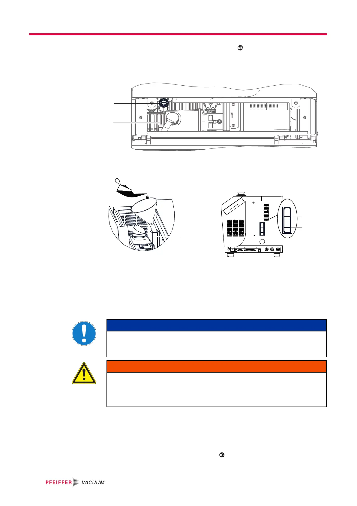 Remove the oil fill cap (1) from the rotary vane pump (2).