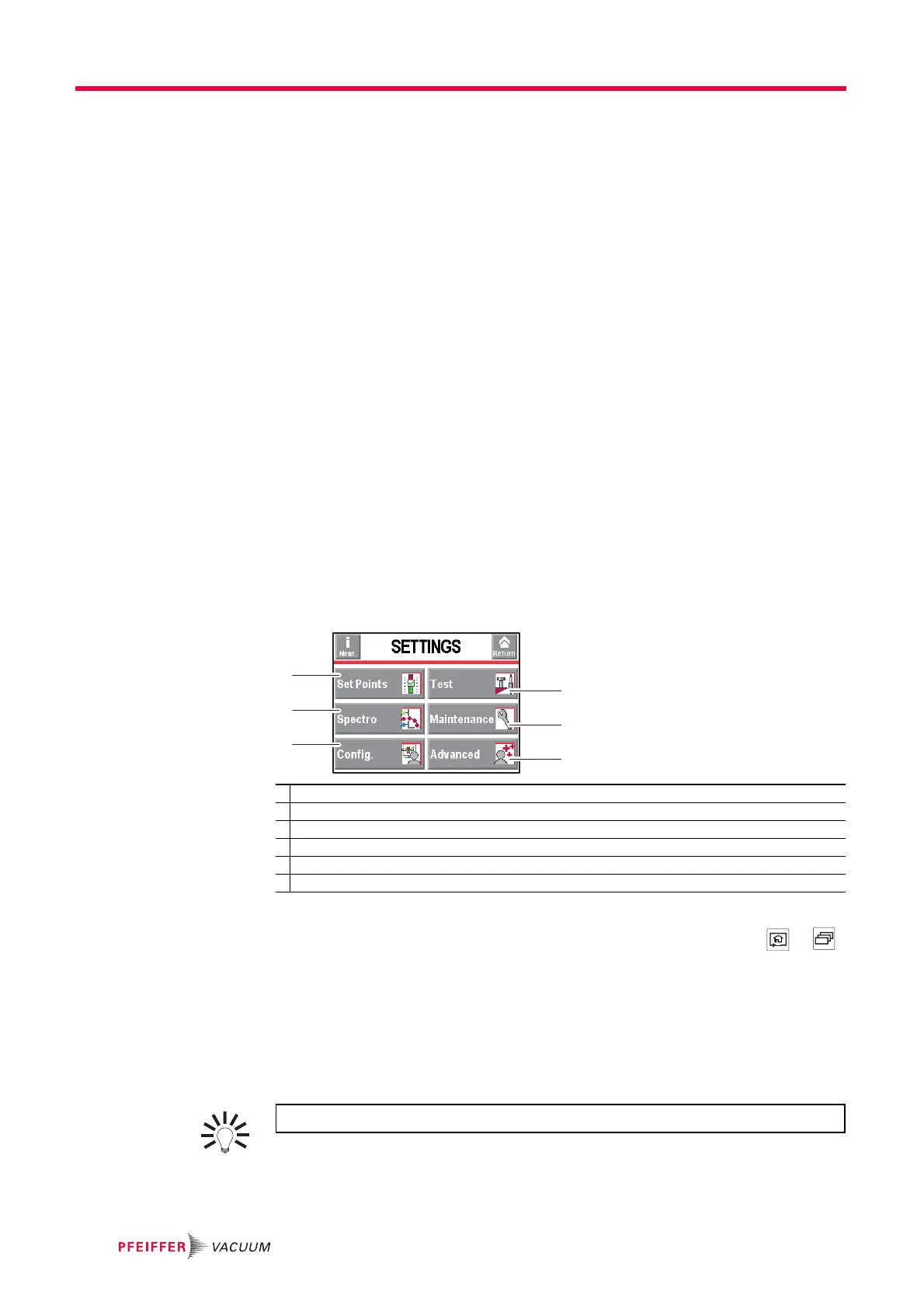 5 Detector setting for the operator: language, unit, password, function keys, application screens.