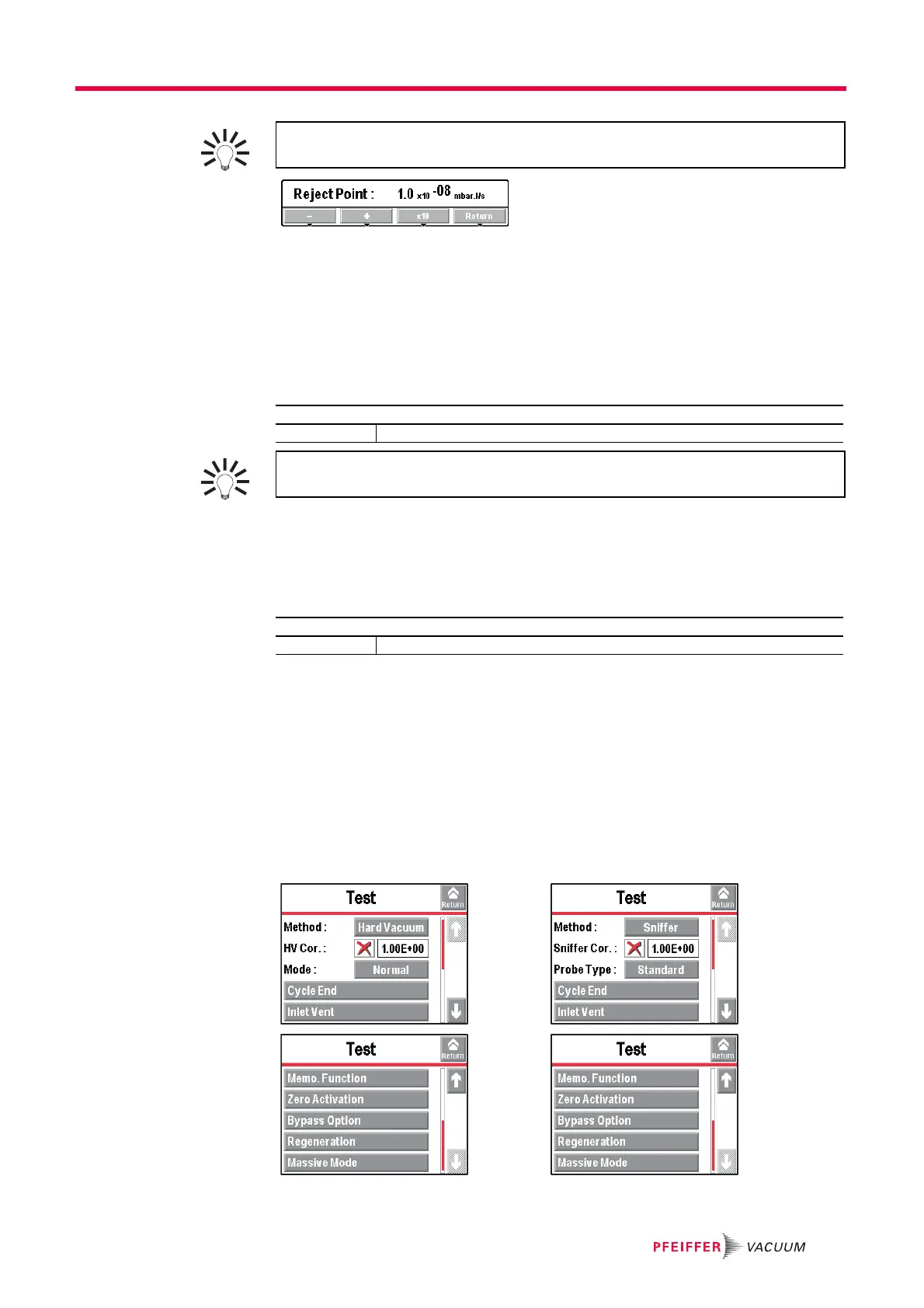 Fig. 20: Hard vacuum test 1 and sniffing test 2 menu